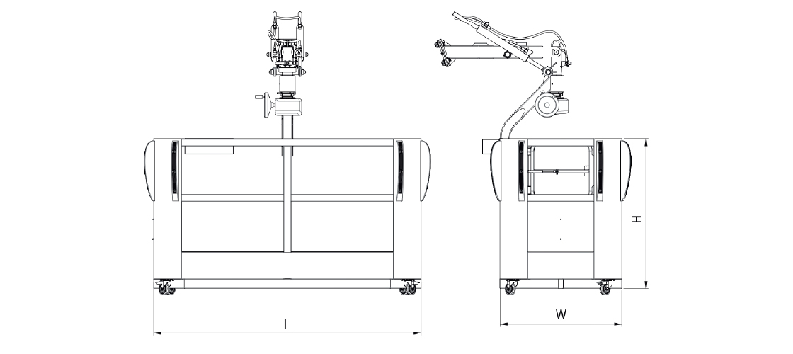 It is equipped with a stabilizing cylinder for smoother movements, a manual or optional electric gearbox allowing rotation, a walk-through entry gate with automatic closure, rubber side bumpers for hand protection and impact resistance, wheels, reflective stickers on the bottom and sides of the basket, a document case, an aluminum tool holder, and an impact protection casing on the gearbox.