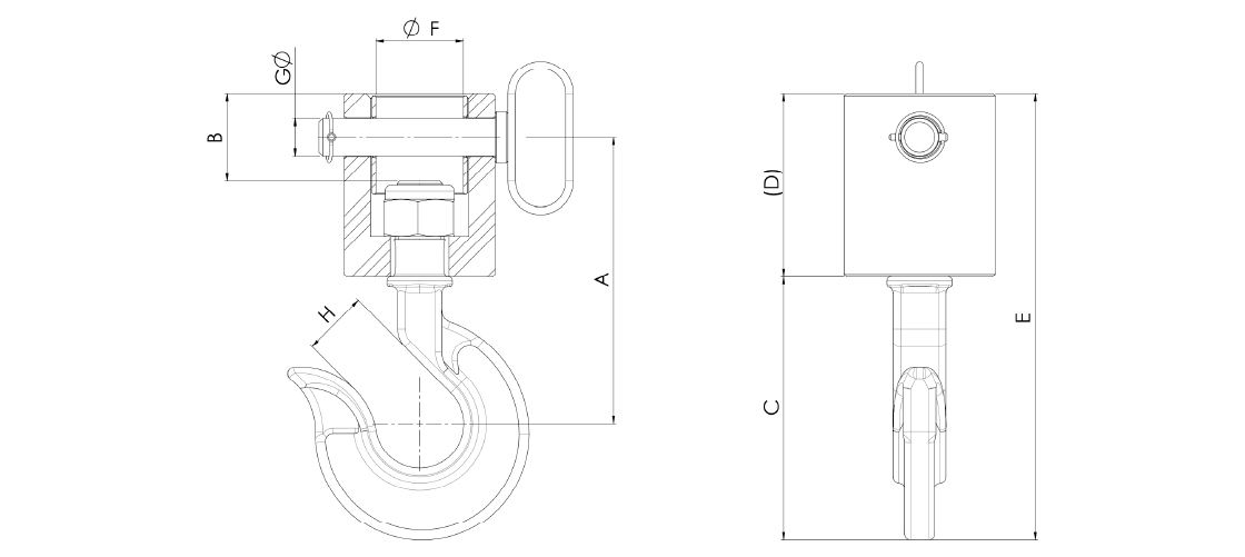 Gancio rotante per sollevamento adatto a tutti i tipi di rotatori.